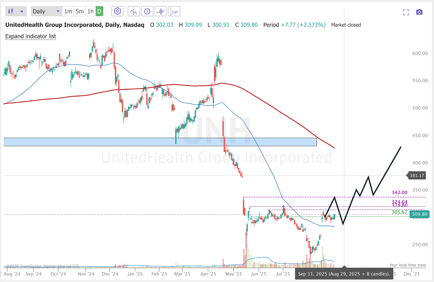 UNH I’m still mega bullish until 400+. I’m in heavy size already on this but if we were to pullback to 280 range I’d add some more leap calls. If I was not in yet and was looking to get a new position, I’d probably target 290ish as a good spot to add shares (the CEO bought 25M in shares at around 290 when it was initially drilling, so that’s not a bad spot to look long term). If we got down closer to 250 that’s better for Leap calls.